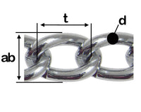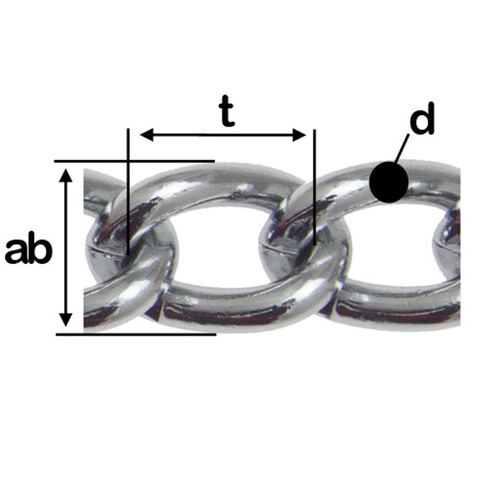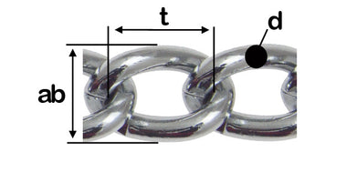 Met een draaddikte (Ø) van 3,0 mm, een schakellengte (t) van 11,2 mm en een breedte (ab) van 12,0 mm, is deze ketting uitermate geschikt voor diverse toepassingen – van decoratief gebruik tot lichte bevestigings- en ophangtaken.