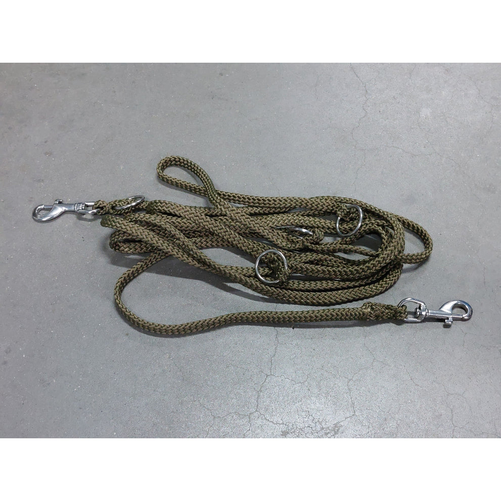 Hundeleine Jagdgrün 5 m verstellbar, 2 Karabinerhaken aus Edelstahl